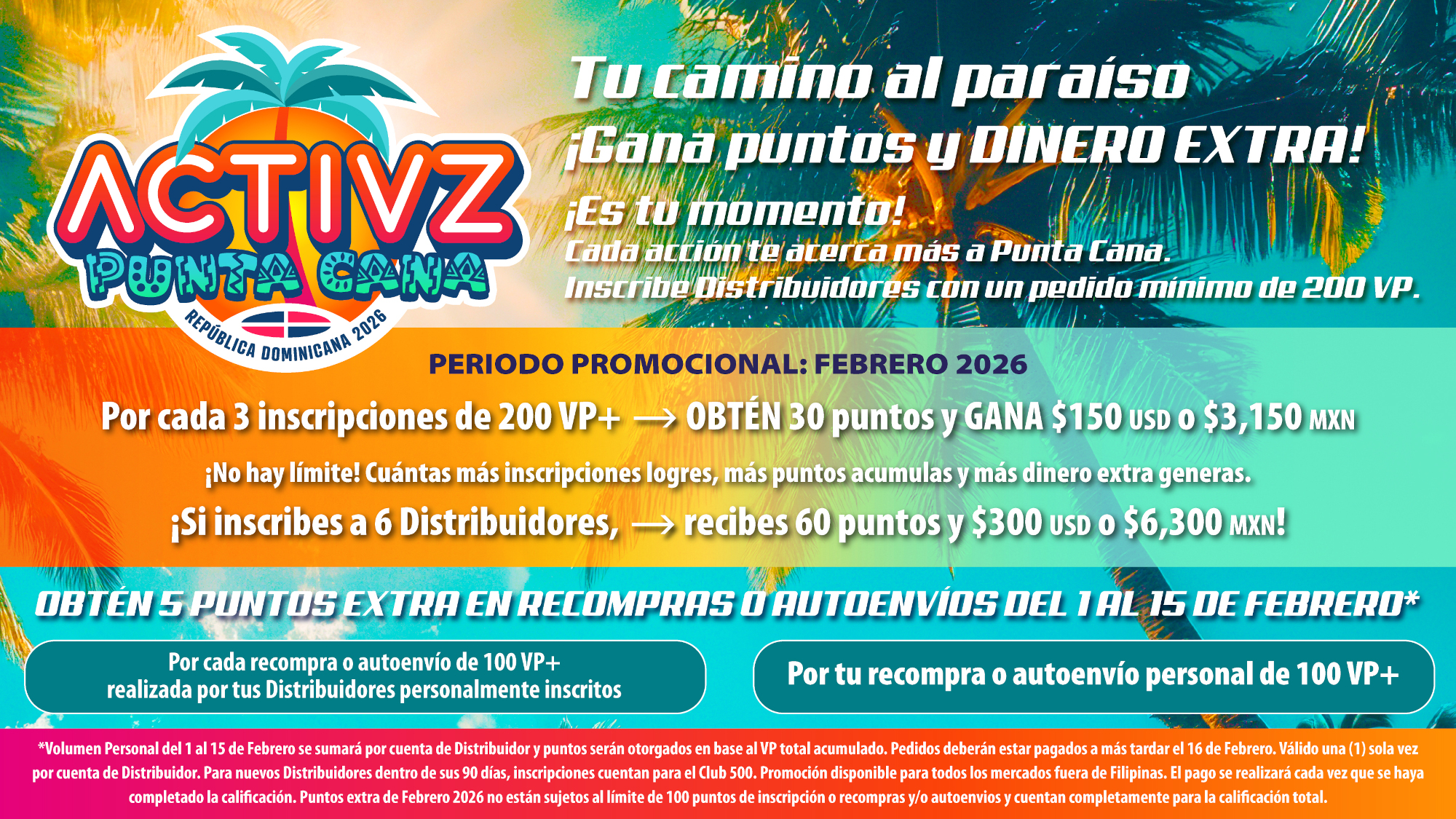 Inscripciones de Nuevos Distribuidores o Clientes Preferidos con un mínimo de 100 VP+.